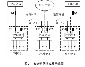 的區(qū)段,兩頭都能或者都不能檢測到故障信號的區(qū)段則不是故障線路,所以可快速簡略的將故障點定位在K12和K21之間。開關K12會跳閘,開關K21堅持分閘狀態(tài)并閉鎖,將故障區(qū)段切除。配網(wǎng)主站接收到阻隔成功信息,經(jīng)過調(diào)度主動化體系將開關K11合閘,康復非故障區(qū)域供電。同理,當在F2處產(chǎn)生故障時,集中式智能操控器將收集到的故障信號傳輸?shù)脚渚W(wǎng)主站,配網(wǎng)主站對故障信號進行剖析和邏輯判別。經(jīng)過故障點處在兩頭感受到信號不通的區(qū)段的判據(jù),將故障定位在K22和K31之間。開關K3會跳開然后主動重合,開關K31、K22跳開后不再閉合,將故障區(qū)段切除。配網(wǎng)主站接收到阻隔成功信息,經(jīng)過調(diào)度主動化體系將開關K21合閘,康復非故障區(qū)域供電。在整個過程中,從發(fā)現(xiàn)故障到故障阻隔最終將非故障區(qū)域康復供電所需求的時間非常的少,可以最大極限的進步供電的牢靠性,這是選用智能環(huán)網(wǎng)柜的優(yōu)越性地點