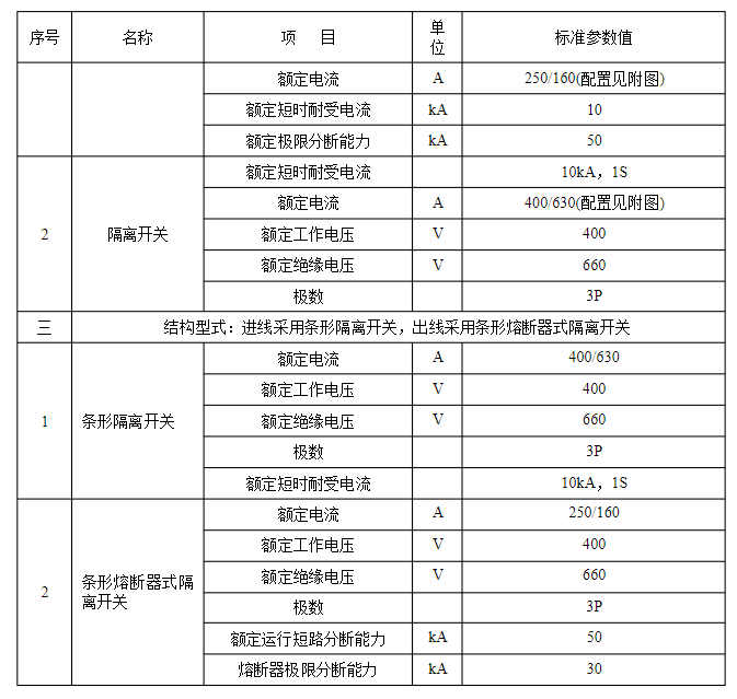 2.1低壓電纜分支箱技術(shù)參數(shù)低壓電纜分支箱技術(shù)參數(shù)見技術(shù)標(biāo)準(zhǔn)專用部分的技術(shù)參數(shù)特性表。