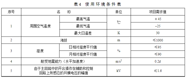 4使用環(huán)境條件表低壓電纜分支箱使用環(huán)境條件見表4。特殊環(huán)境要求根據(jù)項(xiàng)目情況進(jìn)行編制。