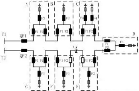 一般由3個(gè)間隔組成,包含兩個(gè)進(jìn)出線間隔和變壓器間隔。進(jìn)出線間隔主要用于缺點(diǎn)線路的隔絕,以及通過調(diào)整電源方向來康復(fù)正常供電。變壓器間隔則通過組合電器來對變壓器內(nèi)部短路缺點(diǎn)進(jìn)行快速切除。