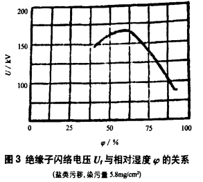 電纜分支箱地處交通要道,背靠山坡,面向公路,塵土很大,絕緣子表面的積塵較多,在污層受潮時(shí)。其間所含可溶性鹽類及酸堿成分溶解于水中,使表面電導(dǎo)率驟增,泄露電流許多增加,大大下降閃絡(luò)電壓。一般說來,絕緣子的污閃電壓隨其污染程度的增加而下降。污染嚴(yán)峻時(shí),跟著污染程度繼續(xù)增加,污閃電壓的下降已很緩慢,但這時(shí)污閃電壓常?,F(xiàn)已低于作業(yè)電壓了。單調(diào)污穢的電阻較大,它并不下降絕緣子的閃絡(luò)電壓,一般當(dāng)空氣相對濕度小于50%~70%時(shí),沿面閃絡(luò)電壓不會下降;高于這數(shù)值時(shí),跟著濕度增加,閃絡(luò)電壓敏捷下降,如圖3所示。實(shí)踐作業(yè)中,絕緣子污閃事端都發(fā)生在霧、露、陰雨連綿等高濕度的氣候.由于在這種條件下、積塵中水深性的鹽類溶解,使污層成為了半導(dǎo)體,大大增加泄露,下降閃絡(luò)電壓。本次事端正值當(dāng)?shù)厍лd一時(shí)的大雨期間,而開關(guān)柜柜體的密封較差,柜內(nèi)相對濕度已達(dá)90%以上,開關(guān)柜的操作安排安排嚴(yán)峻腐蝕,以至于徹底不能正常操作,由臟污沿面放電的進(jìn)程的評論可知,污層的電阻越大,泄露電流越小,放電翻開越困難,閃絡(luò)電壓也相應(yīng)行進(jìn)。在相同污染和濕潤條件下,介質(zhì)表面形狀、南北極間的沿面最短距離即泄露距離是影響表面電阻和閃絡(luò)電壓的重要要素。泄露距離增加,污閃電壓也增加。不同成都的污穢情況對線路及變電站絕緣的影響程度是不同的,因而應(yīng)依據(jù)不同的污移情況,選用相應(yīng)的絕緣標(biāo)準(zhǔn)保證電網(wǎng)安全作業(yè)"?,F(xiàn)在,我們用泄露比距來估計(jì)臟污條件下絕緣子的耐污功用。由于我局所轄電網(wǎng)為渝中區(qū),被定為三級污區(qū),按變電站設(shè)備考慮泄瀾比距應(yīng)大于4cm/MkV。