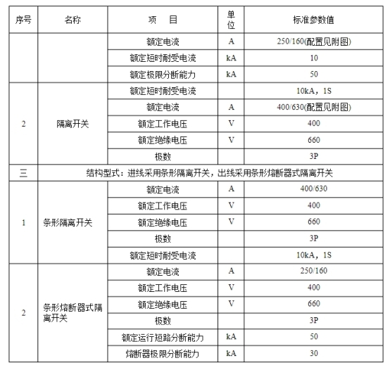 2.2.3關(guān)于出線選用塑殼斷路器型式的分支箱應(yīng)當(dāng)滿足以下要求:斷路器的資料應(yīng)具有耐非常熱和火的性能。斷路器選用3極,裝備電子脫扣器,不帶失壓脫扣器,斷路器一起具有阻隔功用,外表并應(yīng)有顯著的標(biāo)明“分”、“合”狀況的標(biāo)志。