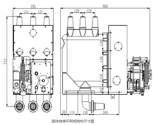 固體絕緣環(huán)網(wǎng)柜的固體絕緣系統(tǒng)選用APG工藝成型的固封極柱將真空滅弧室和上下出線座等載流導(dǎo)體封裝成一個(gè)整體。隔絕開關(guān)安裝在固封極柱的腔體內(nèi),使得相間絕緣以固體絕緣方法為主絕緣方法。單相母線可擴(kuò)展規(guī)劃,結(jié)束功用單元無線擴(kuò)展。
