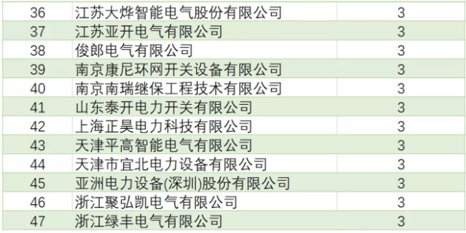 表2國(guó)網(wǎng)環(huán)網(wǎng)箱產(chǎn)品中標(biāo)企業(yè)(市場(chǎng)份額超過(guò)1%部分)