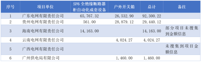 2020年度,南網(wǎng)范圍共有6個(gè)省級(jí)電力公司有安排戶(hù)外開(kāi)關(guān)箱產(chǎn)品招標(biāo),通過(guò)各種招標(biāo)方式安排了約8.0億元SF6全絕緣斷路器柜自動(dòng)化成套設(shè)備需求和約6.1億元戶(hù)外開(kāi)關(guān)箱需求。